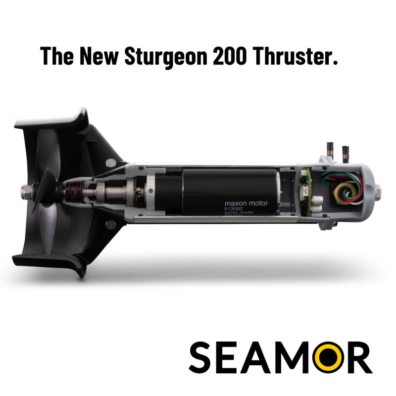 El TRUSTHER Sturgeon 200 es el más reciente impulsor modular de SEAMOR MARINE, diseñado para vehículos operados a distancia (ROV), vehículos submarinos autónomos (AUV) y buques de superficie no tripulados (USV).